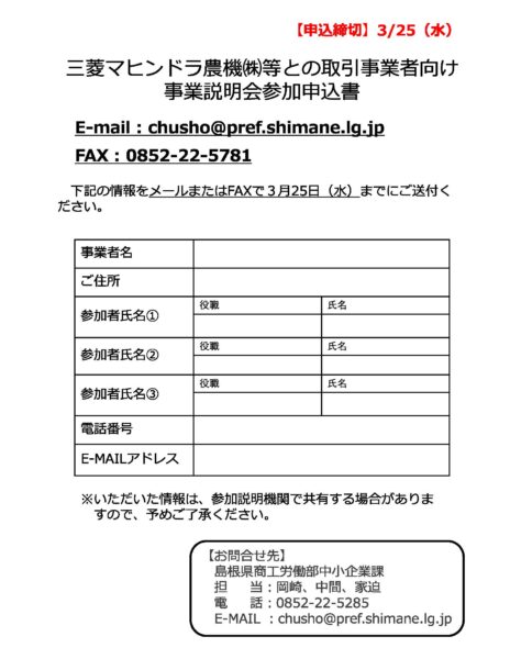 2026.03.13 三菱マヒンドラ農機㈱等との取引事業者向け事業説明会のお知らせ